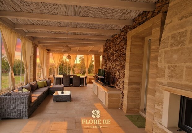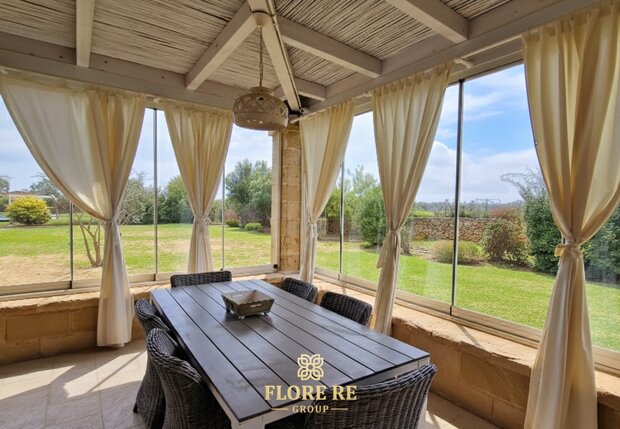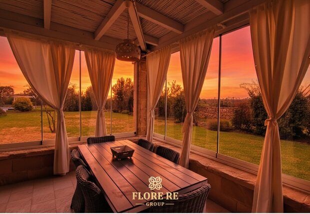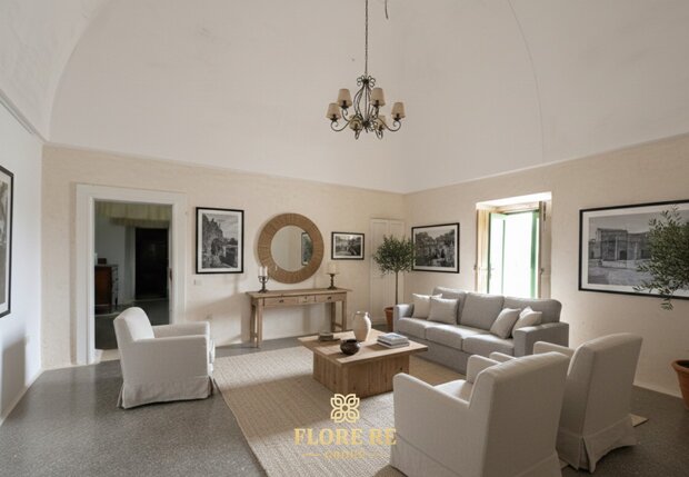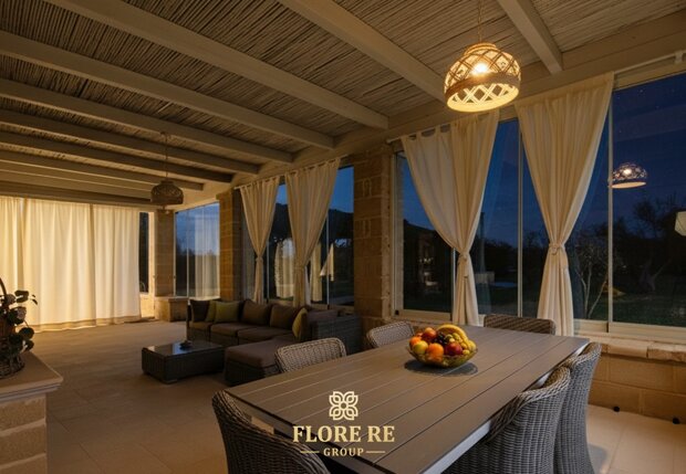 L'Armonia degli Spazi Varcando la soglia, si viene accolti da un'atmosfera sospesa nel tempo.I 200 mq di superficie coperta raccontano secoli di tradizione. Architettura Iconica : La struttura fonde l'eleganza della villa padronale con il fascino ancestrale dei trulli a quattro coni.