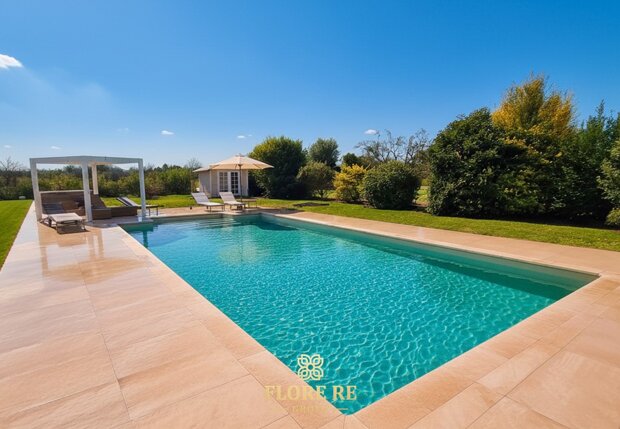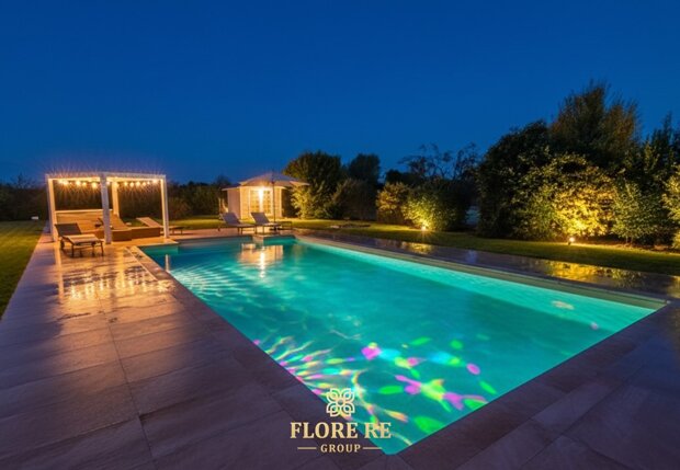 🌿 Oasi Esterna: Benessere e Convivialità, il parco esterno è il vero cuore pulsante della dimora, progettato come un resort privato, piscina privata : una scenografica piscina rettangolare circondata da ampi spazi pavimentati e aree verdi curate.
