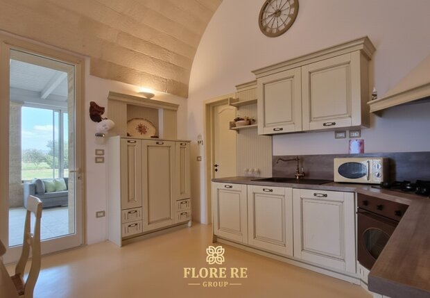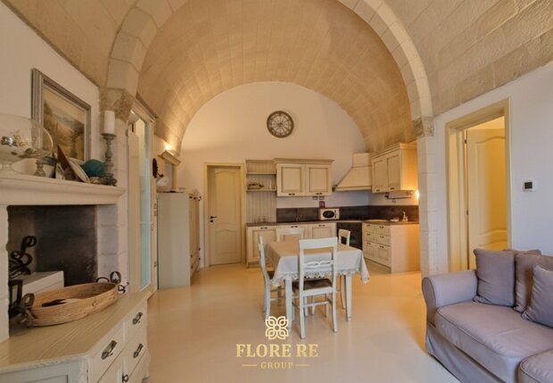 Struttura Principale : Caratterizzata da splendide facciate in pietra a vista e volumi che richiamano la solidità delle antiche dimore salentine.Interni di Charme : La cucina e gli ambienti principali vantano soffitti con volte in pietra , che mantengono una temperatura ideale e conferiscono un'atmosfera senza tempo.