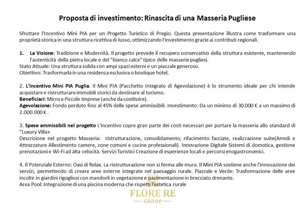 Contatti e Approfondimenti: 👤 Diego Flore – Gruppo Flore RE🌐www.pugliainternationalrealty.it