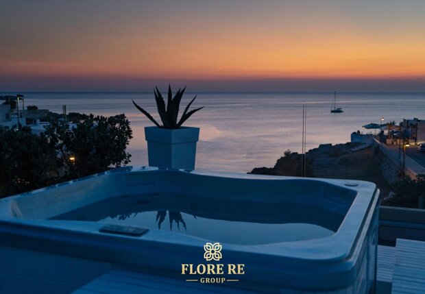Uno dei punti di forza della struttura è la sua terrazza panoramica, attrezzata con arredi da esterno e vasca idromassaggio. Da qui si gode di una vista mozzafiato sul mare e sui tetti bianchi del borgo, offrendo agli ospiti un luogo perfetto per rilassarsi e ammirare tramonti indimenticabili.